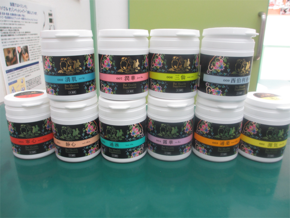 処方する漢方薬はペット専用製品「QUANPOWペットヘルスサプリメント」やツムラの漢方薬を使用しています。